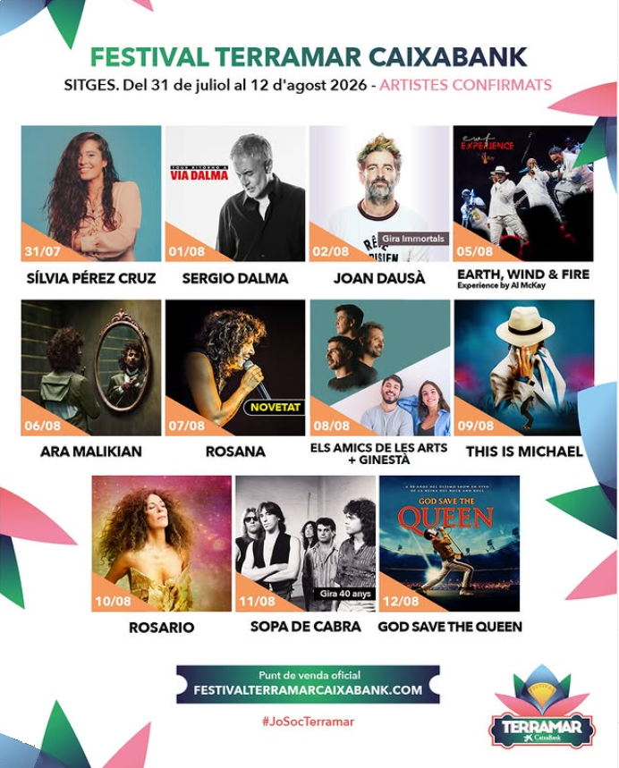 Het Jardins Terramar Festival in Sitges is een evenement op het gebied van vrije tijd, cultuur en gastronomie dat liveconcerten, kleinschalige muziek en lokaal talent combineert in een unieke historische omgeving: de honderdjarige Terramar-tuinen met vijver en zomertheater. Naast muziek kunnen bezoekers genieten van gastronomie, cocktails en DJ-sessies in de Village- en Oasis-gebieden. Het festival zet in op duurzaamheid, met podia van gerecycled materiaal en het behoud van het plantenpatrimonium, en streeft ernaar een culturele referentie te worden die geïntegreerd is met de lokale gemeenschap en het toerisme aan de kust van Barcelona.